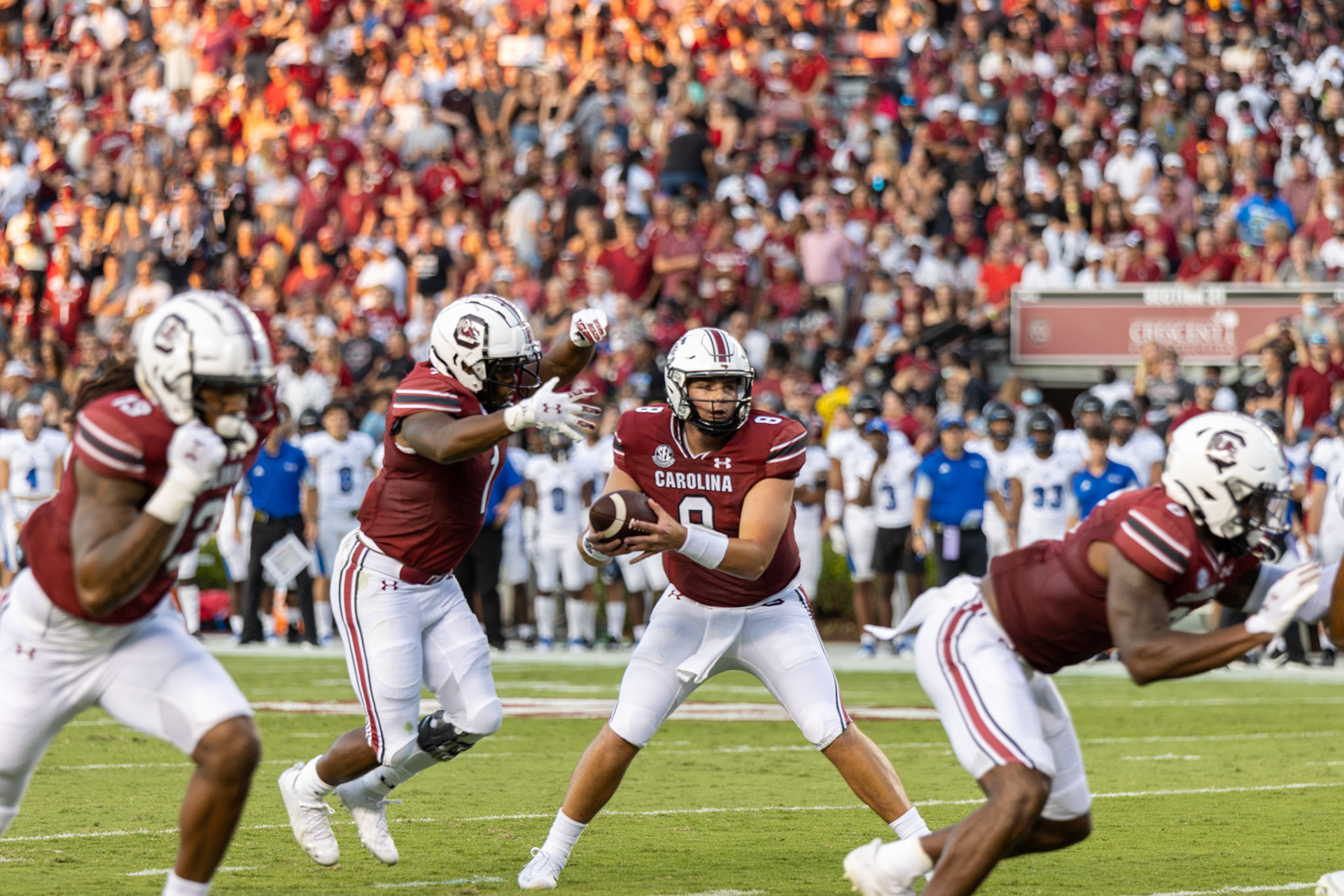 The Gamecocks run out to be greeted by an almost full Williams-Brice Stadium to start off the 2021 football season.