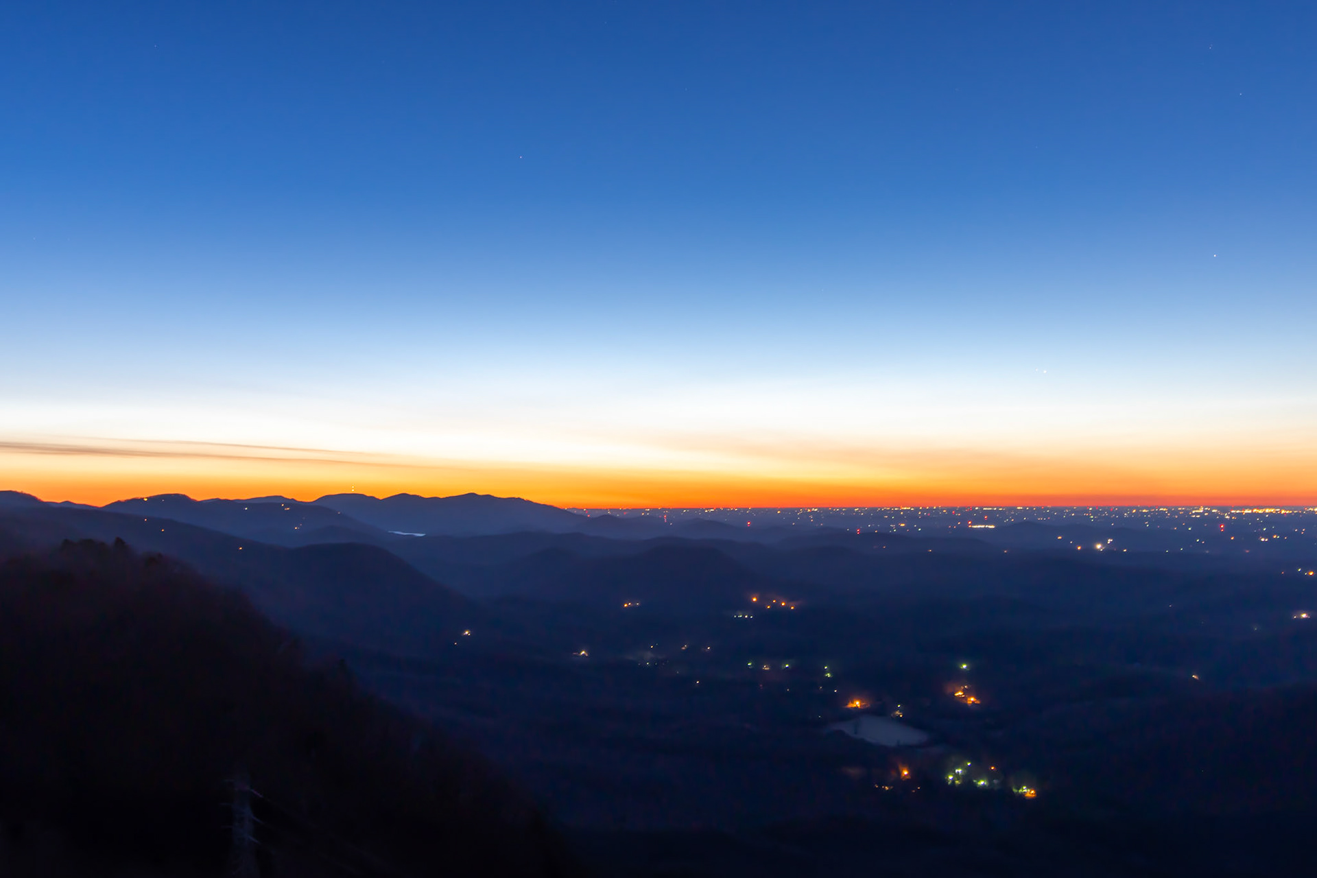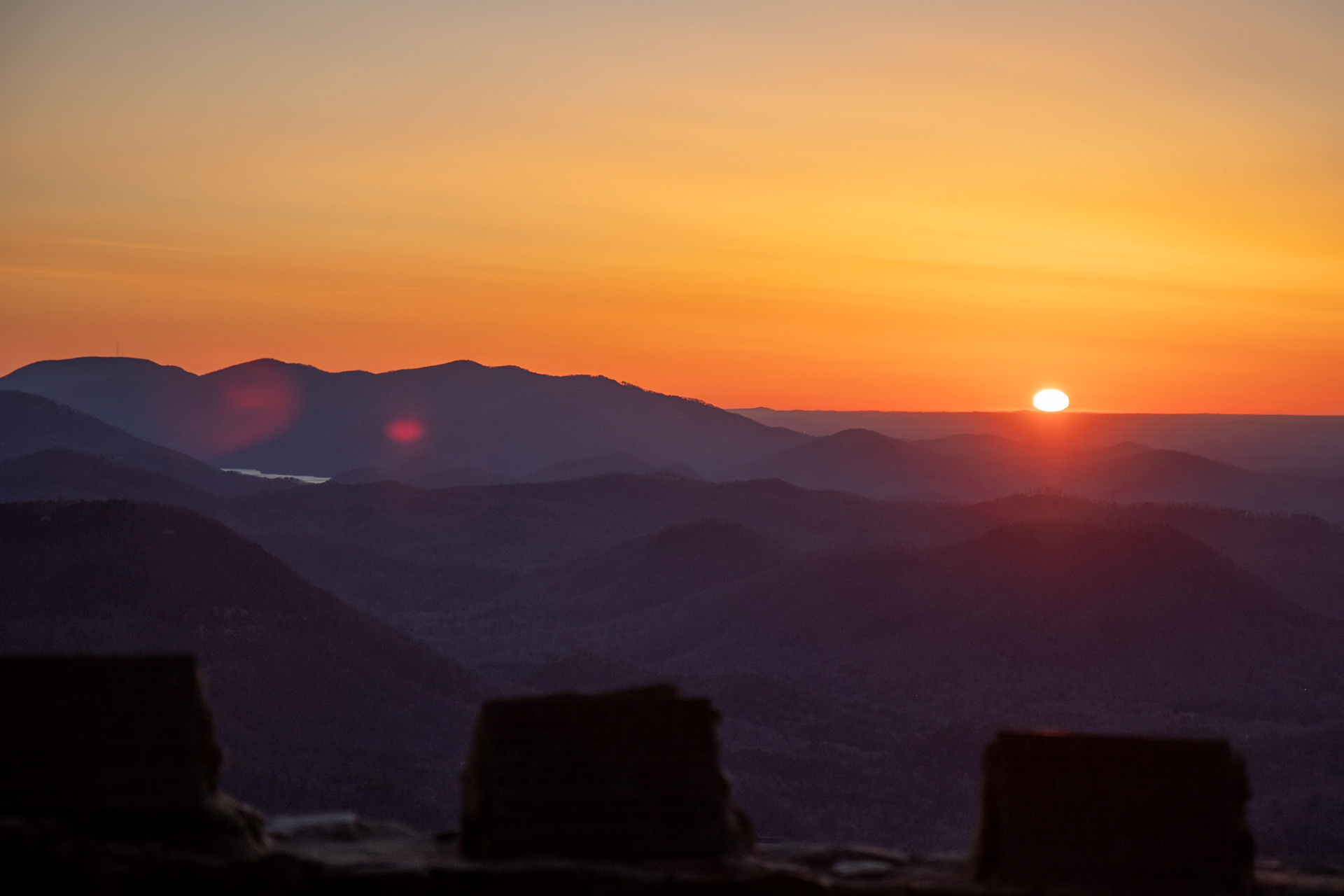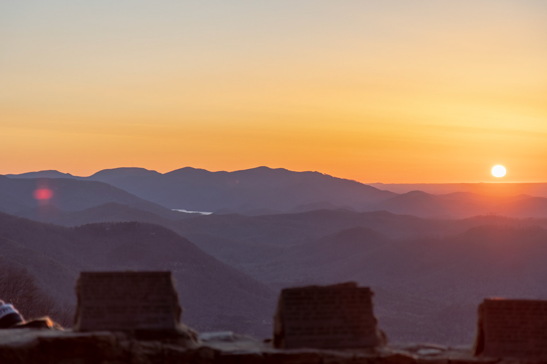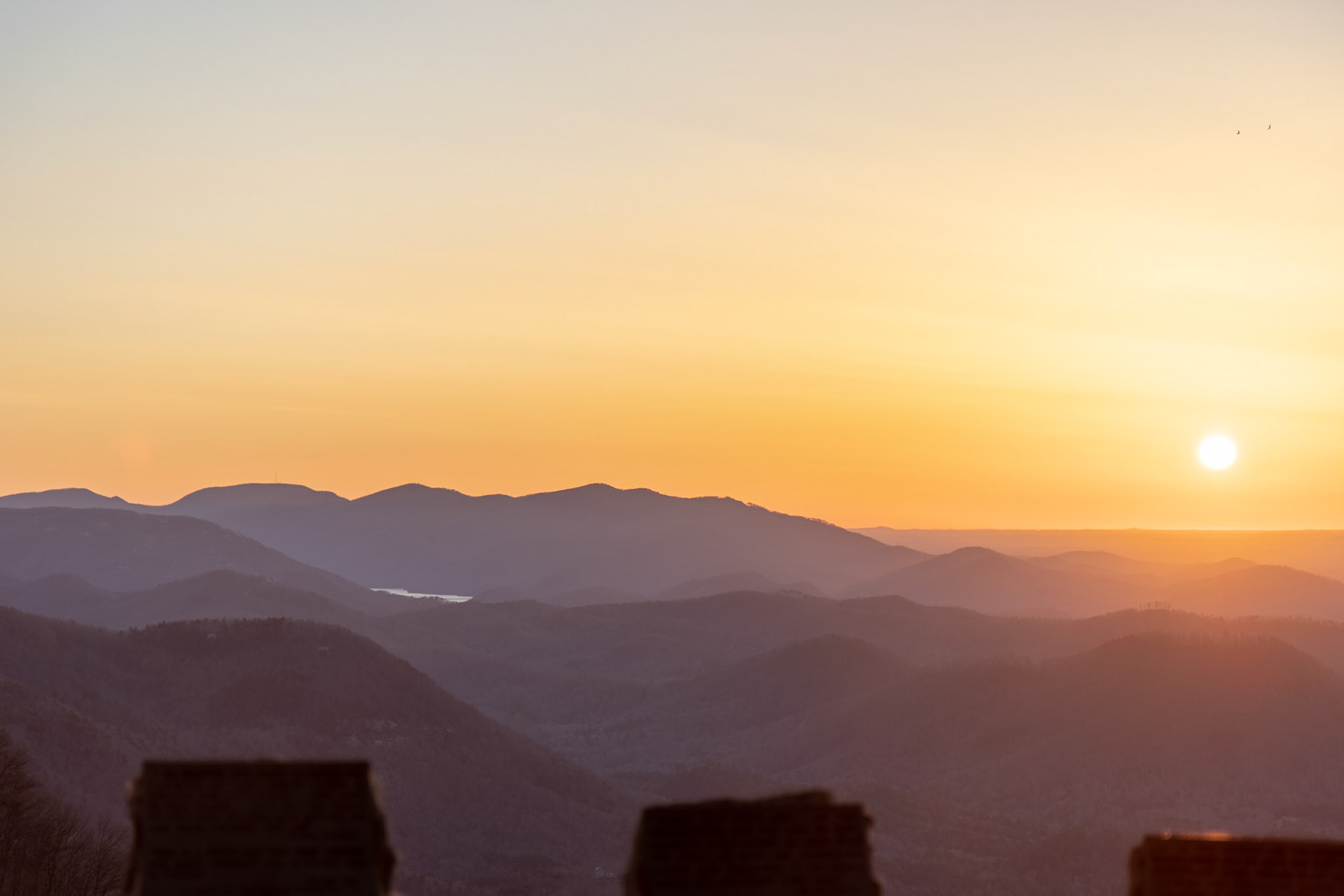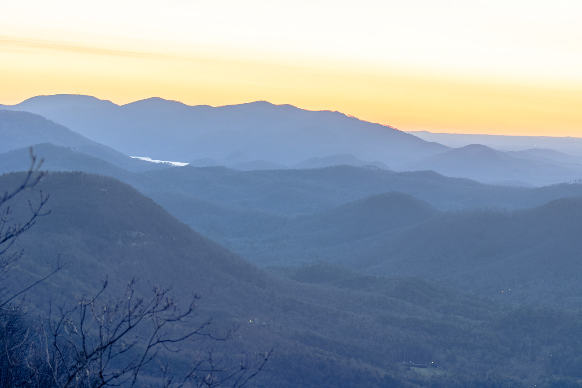 The sunrise over the mountains of Greenville, South Carolina in early March 2021.