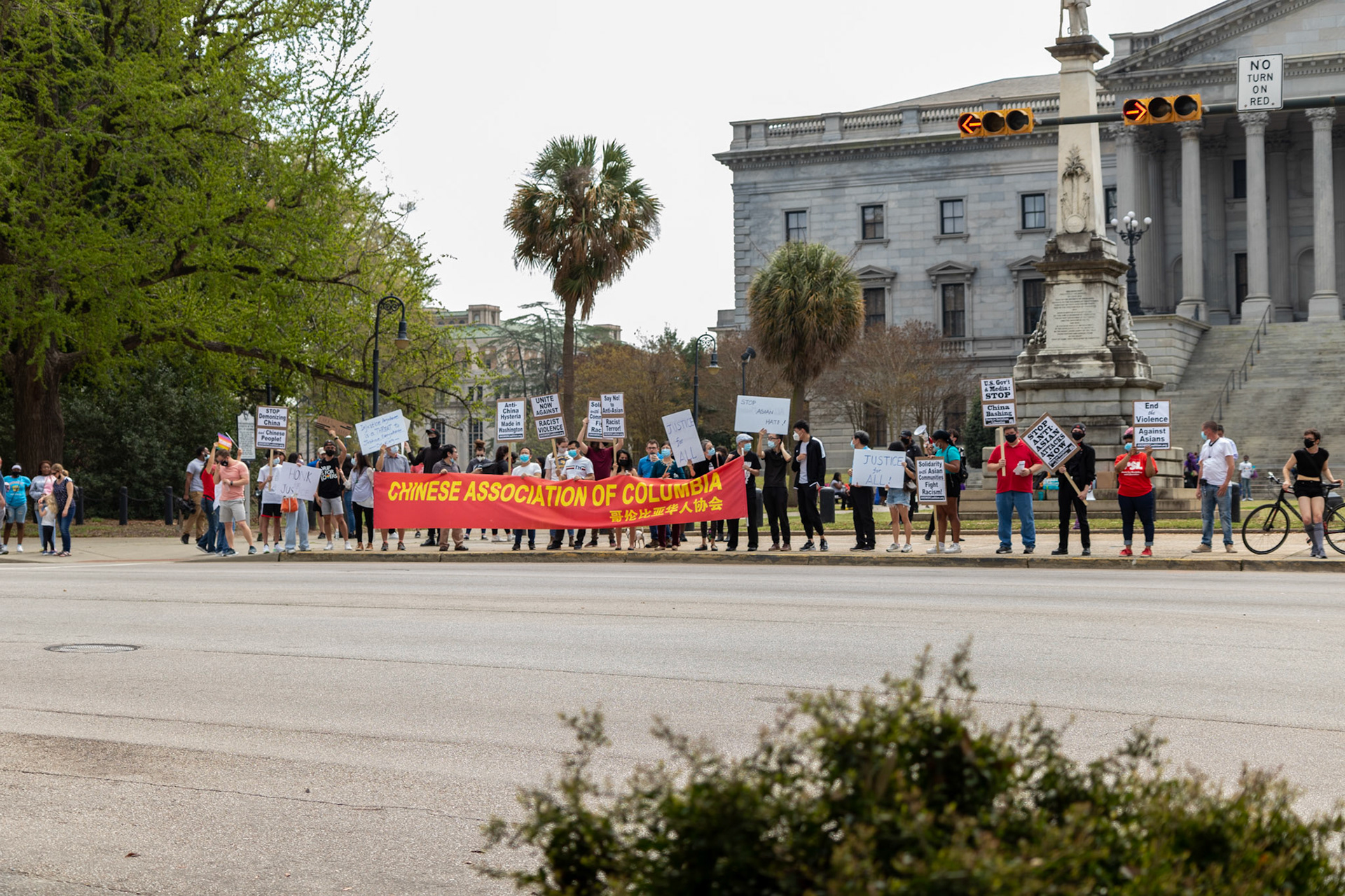 The Chinese Association of Columbia and others gathered outside the South Carolina State House on March 27, 2021.